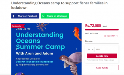 15-year old Arun Viji from Chennai, singlehandedly raised INR 72,000 for our crowdfunding campaign ‘Help Fisher Families‘ by starting an online summer camp on ‘Understanding Oceans’ for children.